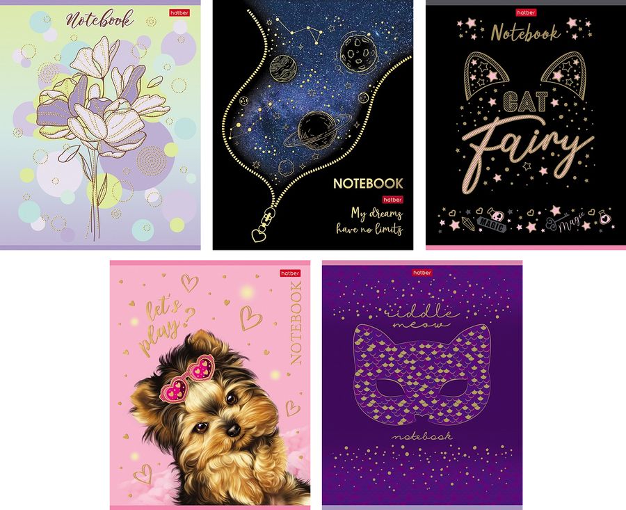 Тетрадь А5 48л клетка Золотое вдохновение 3D фольга ассорти HATBER 48Т5лофВ1
