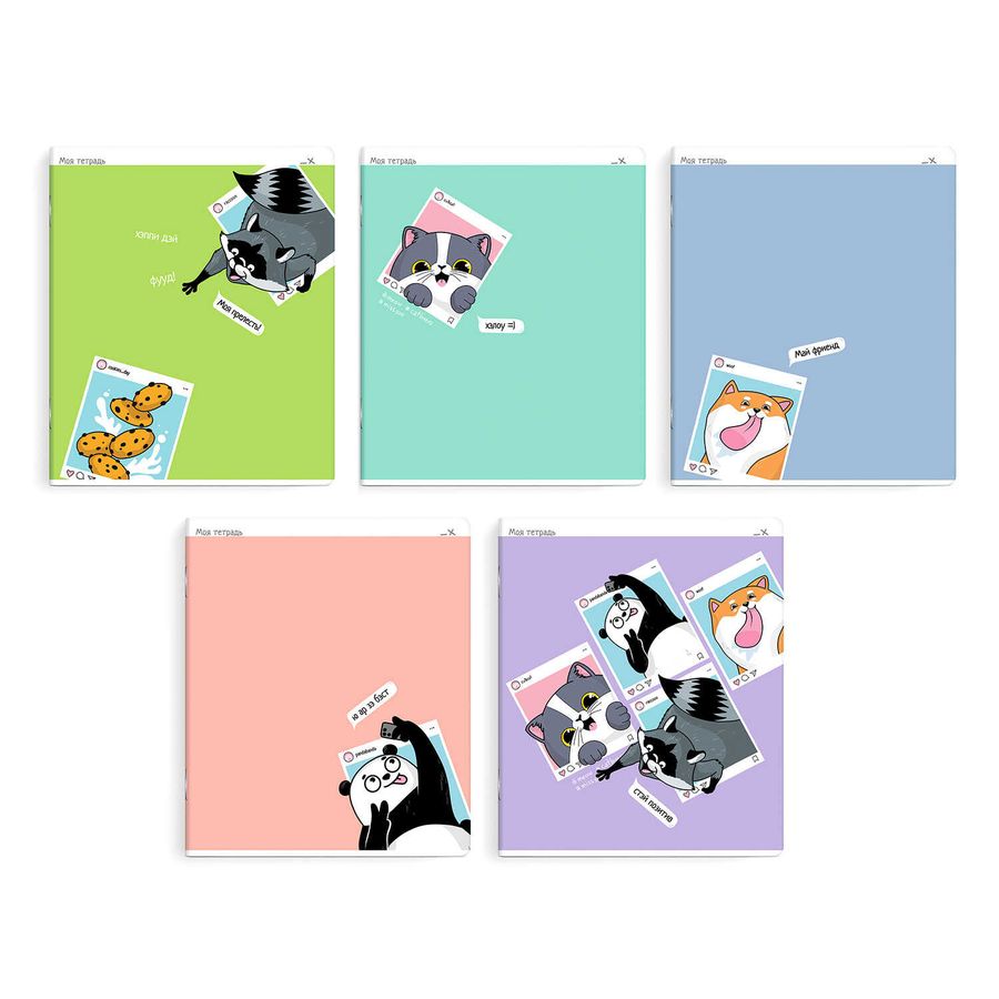 Тетрадь, 48 л, клетка, арт. 63706/ 5 СЕЛФИ мягкий переплёт (2 скобы), обложка - выборочный ТВИН лак, мелованный картон 190 г/м², Упаковка Ассорти/