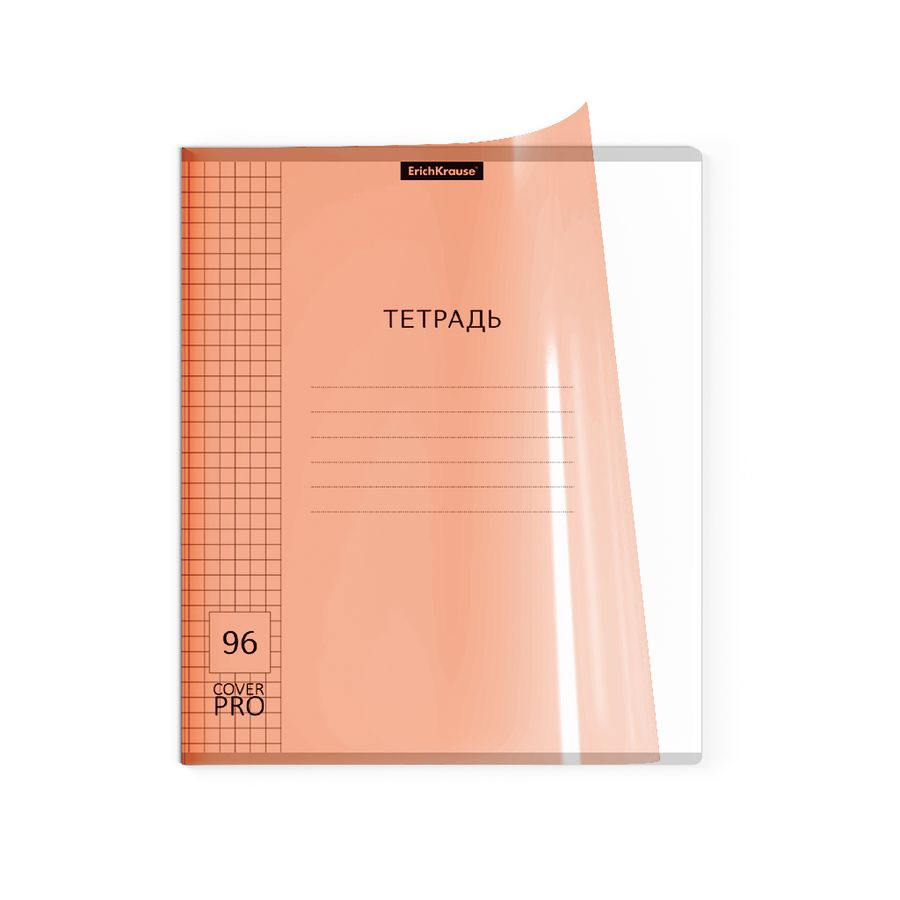 Тетрадь общая ученическая формата А5+ (170x203 мм). Двойная обложка: внешняя выполнена из высококачественного износостойкого цветного глянцевого пластика с фактурой «апельсиновая корка», внутренняя — из офсетной бумаги. В блоке 96 листов в клетку. Бумага офсетная плотностью 60 г/м2. Цвет линовки — синий. Скругленные уголки обложки и блока. Тип скрепления — скоба. Тетради упакованы в термоусадочную пленку по 5 штук.