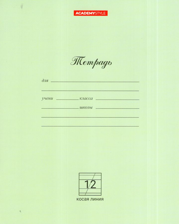 Тетрадь А5 12л косая линия Однотон Светло-зеленая ACADEMY STYLE 13782