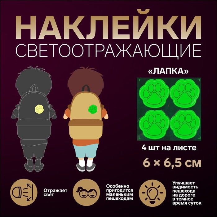 Наклейки светоотражающие Лапка набор 4шт Арт Узор 1276041