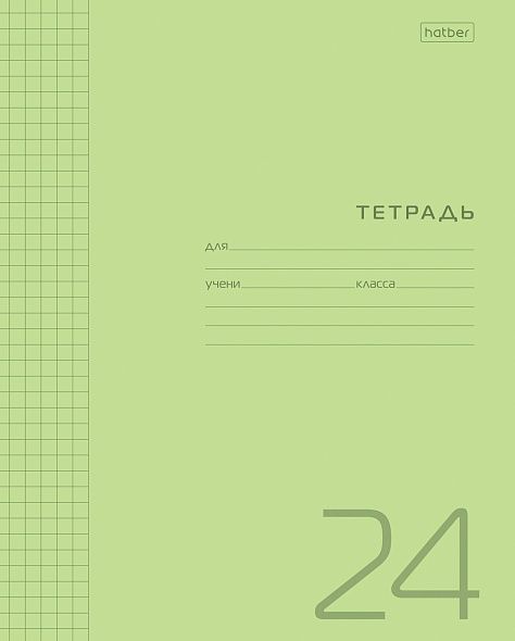 Тетрадь А5 24л клетка пласт.обл. Однотон Зеленая HATBER 24Т5В1