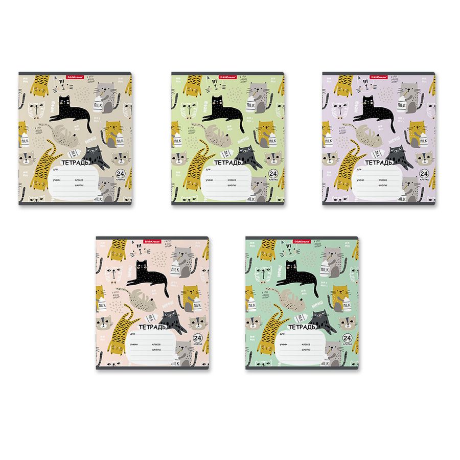 Тетрадь А5 24л клетка Lying Cats ассорти ERICH KRAUSE 58394