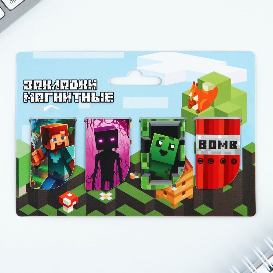 Закладки магнитные мини 4 шт на подложке «Крипер»