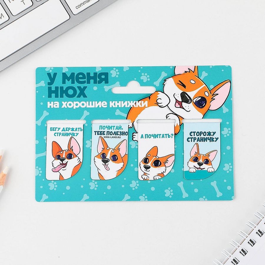 Набор магнитных закладок 4 штуки на подложке «Собачка»