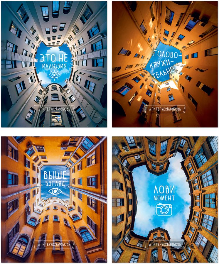 Тетрадь А5 48л клетка Тайные дворы Петербурга soft-touch ассорти ПОЛИНОМ 3336