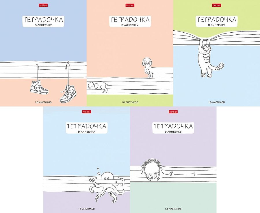 Тетрадь А5 18л линия Тетрадочка в линеечку ассорти HATBER 18Т5В2