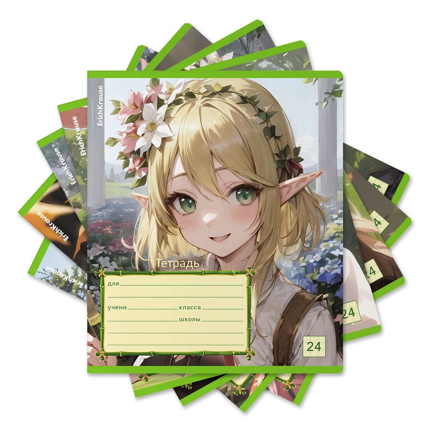 Тетрадь А5 24л клетка скрепка мелов.картон Эльфы Аниме ассорти ERICH KRAUSE 60578