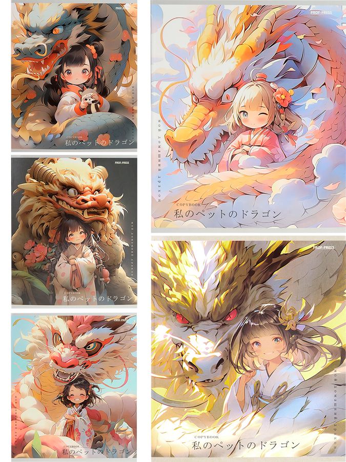 Тетрадь А5 48л клетка Девчонка и дракон мелов.обл. 5 диз. PROF-PRESS 48-3914