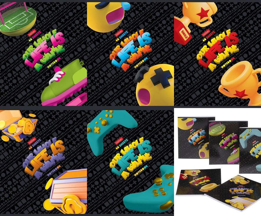 Тетрадь А5 40л клетка Жизнь-игра ассорти HATBER 40Т5В1