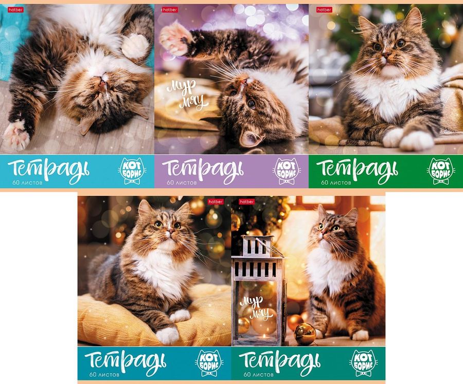 Тетрадь А5 60л клетка Кот Борис ассорти HATBER 60Т5В1