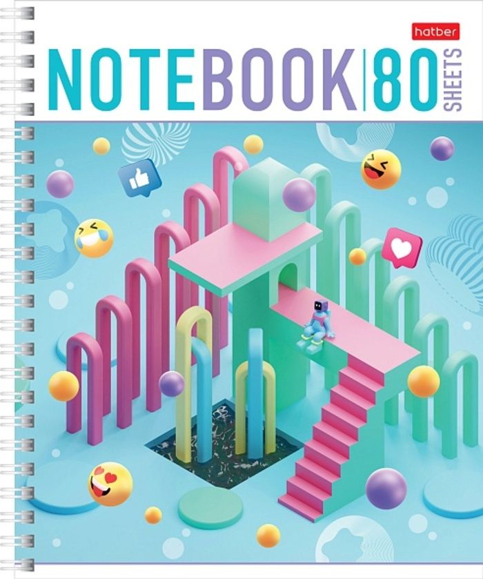 Тетрадь А5 формата 80 листов. Обложка: мелованный картон. Дизайн дополнен матовой ламинацией. Внутренний блок: офсет 65 гр., клетка. Скрепление: гребень. Тетрадь предназначена для записей, подойдет для старшей школы, вуза, дома и офиса. Скрепление 'гребень' позволяет раскрывать тетрадь на 360 градусов.