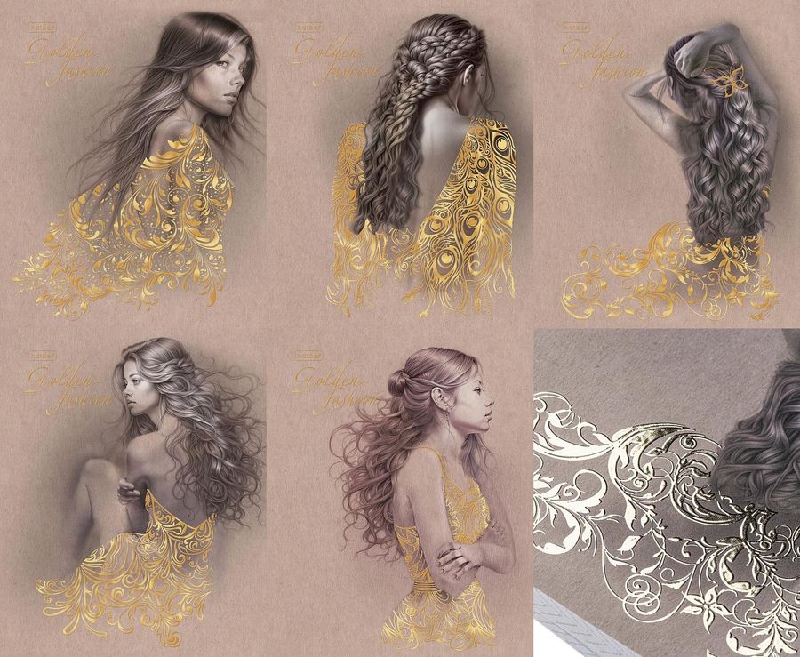 Тетрадь А5 96л клетка Golden lady мат.лам. 3D фольга 5 дизайнов HATBER 96Т5лофВ1