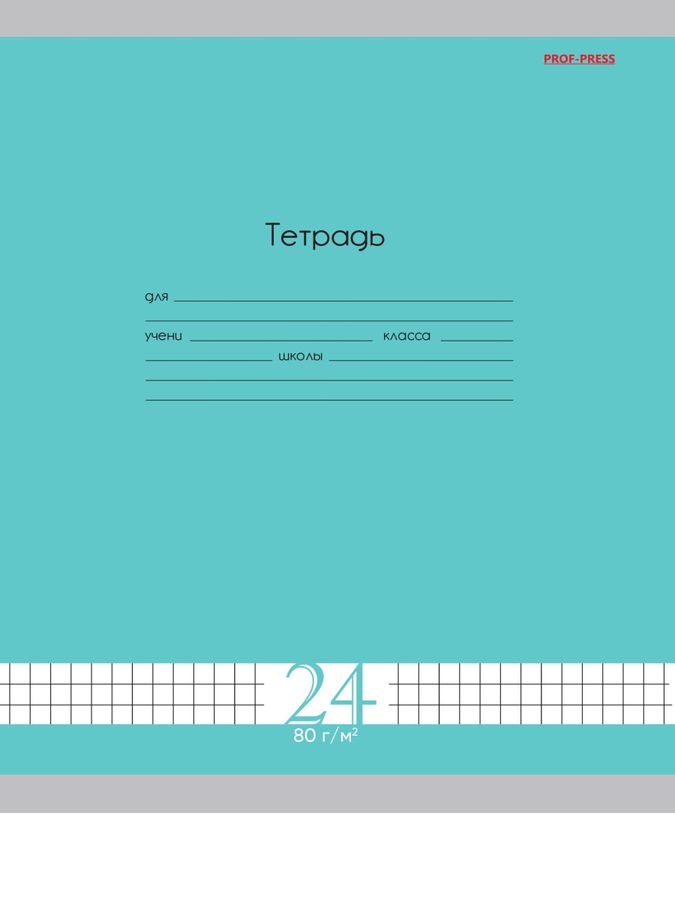 Тетрадь А5 24л клетка Однотон Fresh Line Мята 80г/м2 мелов.обл. ПРОФ-ПРЕСС Т24-1755