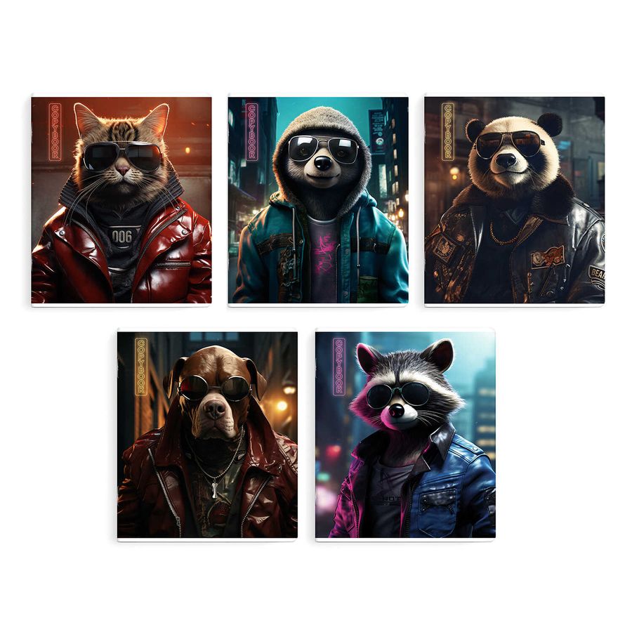 Тетрадь А5 48л клетка скрепка мелов.картон Крутые звери конгрев твин УФ-лак ассорти ФЕНИКС+ 66718