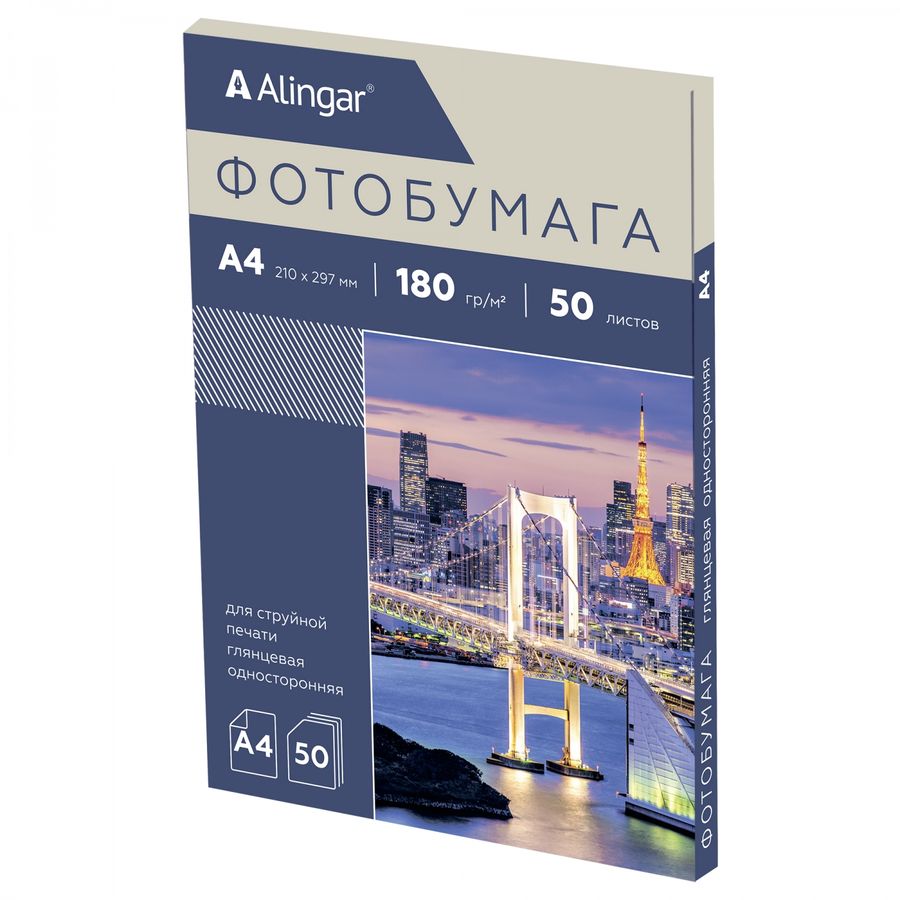 Фотобумага для струйной печати А4 50л 180г/м2 глянцевая ALINGAR AL11090