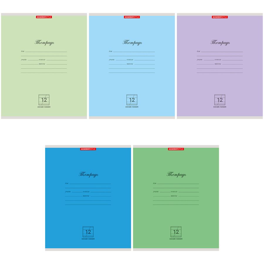 Тетрадь А5 12л косая линия мелов.картон Однотон Микс ACADEMY STYLE 13788/5