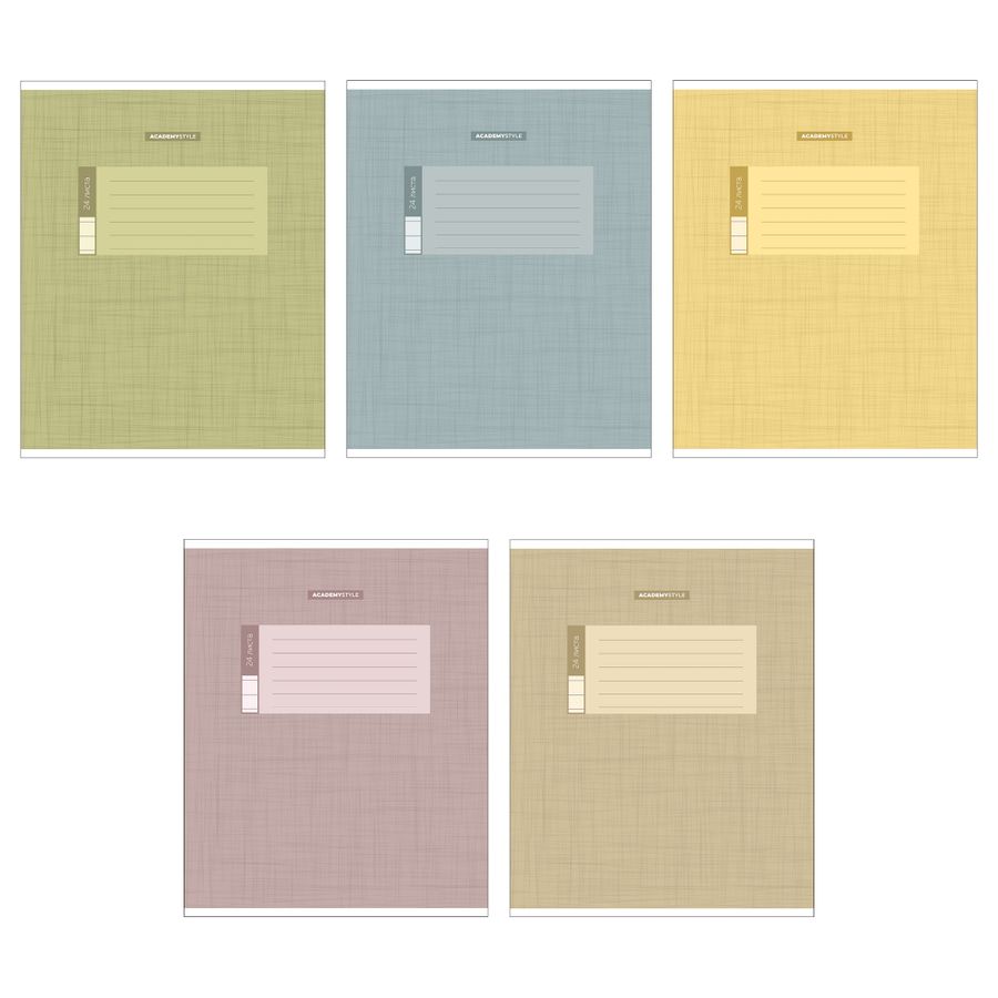 Тетрадь А5 24л линия скрепка обл.офсет.бум. Однотон Пудровый лен текстура ACADEMY STYLE 10469/5