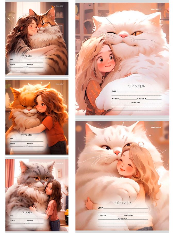 Тетрадь А5 12л линия мелов.картон Огромные котики ассорти 5 дизайнов PROF-PRESS Т12-3932