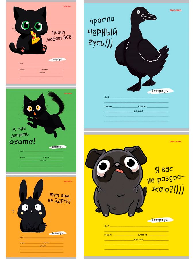 Тетрадь А5 18л линия скрепка мелов.картон Зверята и надписи-1 5 дизайнов PROF-PRESS 18-5591