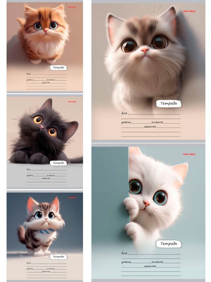 Тетрадь А5 18л линия скрепка обл.мелов.бум. Милый взгляд котенка 5 дизайнов PROF-PRESS 18-5592