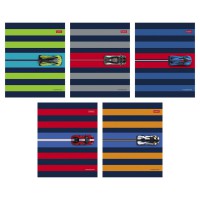 Тетрадь общая ученическая формата А5+ (170x203 мм). Двойная обложка: внешняя выполнена из высококачественного износостойкого цветного пластика с фактурой «апельсиновая корка», внутренняя — из офсетной бумаги. В блоке 48 листов в клетку. Бумага офсетная плотностью 60 г/м2. Цвет линовки — синий. Скругленные уголки обложки и блока. Тип скрепления — скоба.
