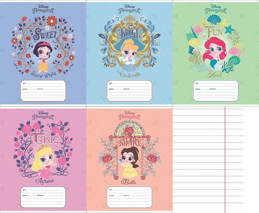 Тетрадь А5 12л линия мелов.картон Принцессы Диснея ассорти 5 диз. HATBER 12Т5В2