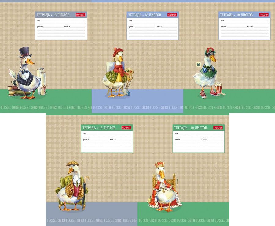 18Т5тВ1 Тетрадь 18л А5ф клетка 65г/кв.м на скобе тиснение 5 диз.в блоке скругл.углы серия -GUSSI-