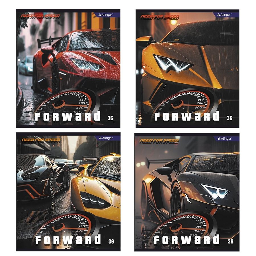 Тетрадь 36 л., А5, клетка, Alingar "Forward", скрепка, офсет, мелованный картон (стандарт), 4 дизайна