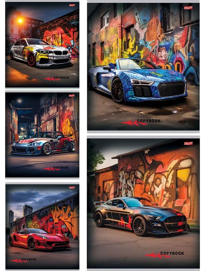 Тетрадь А5 48л клетка скрепка мелов.картон Авто на фоне граффити - 1 PROFIT 48-5747