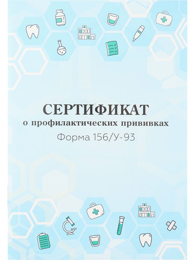 Сертификат о профилактических прививках оформляется в медучреждениях. В него вносятся сведения с первых дней жизни. Бланк по форме № 156/у-93 соответствует государственным стандартам документального ведения учета и утвержден Министерством здравоохранения Российской Федерации. Формат А6, 12 листов.