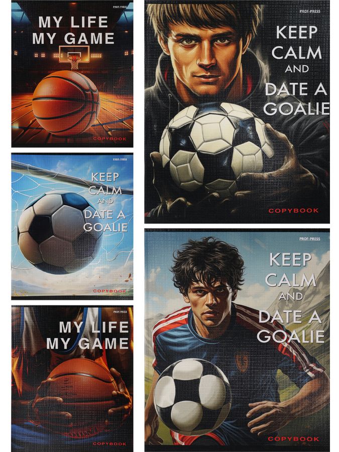 Тетрадь А5 48л клетка скрепка мелов.картон Красивый спорт лен ассорти PROF-PRESS 48-5136