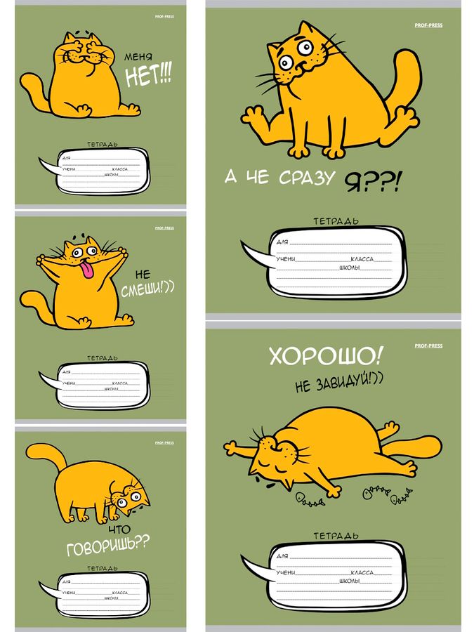 Тетрадь А5 24л линия скрепка обл.мелов.бум. Забавный кот и фразы ассорти 5диз PROF-PRESS 24-5799