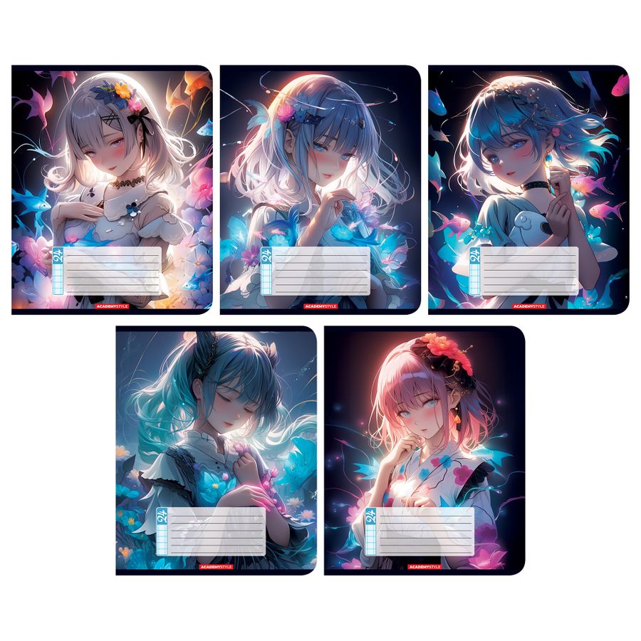 Тетрадь А5 24л клетка скрепка 14714/5 Нимфы Academy Style Коллекция: Аниме Эффекты обложки: глиттер Формат: А5 Вид крепления: скрепка Материал товара: обложка - картон мелованный, блок - 60-65г
