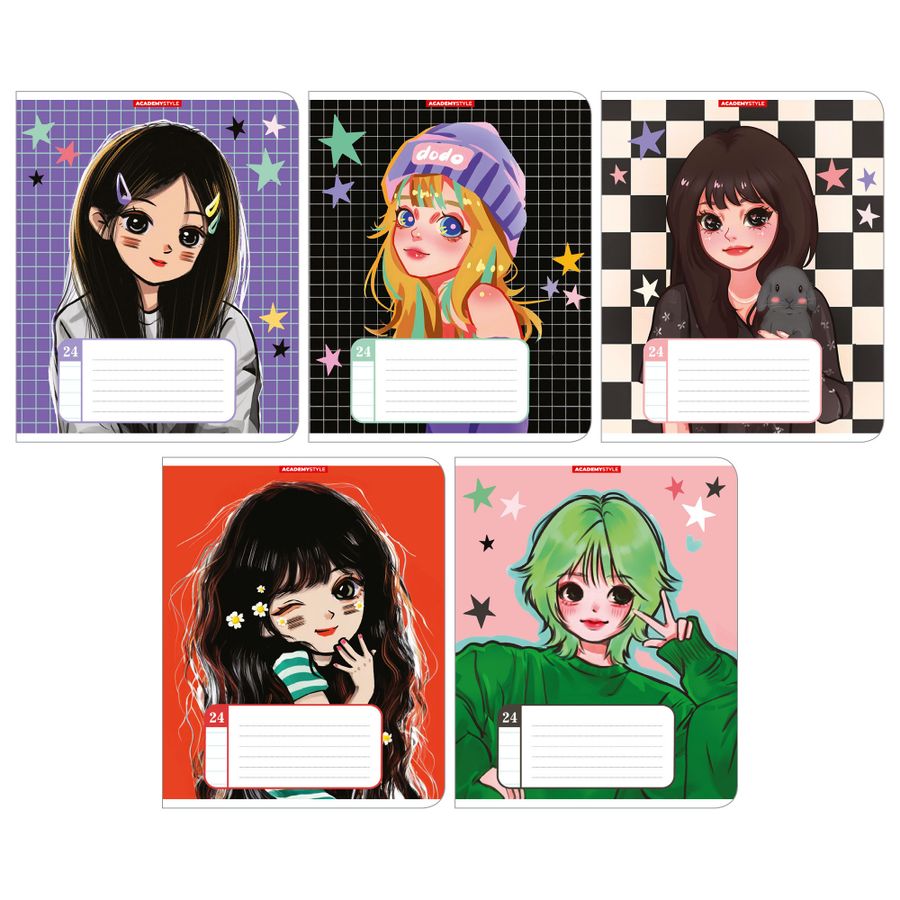 Тетрадь А5 24л линия скрепка 14356/5 Девочки Academy Style Коллекция: Девочки Эффекты обложки: полный УФ лак Формат: А5 Вид крепления: скрепка Материал товара: обложка - картон мелованный, блок - 60-65г