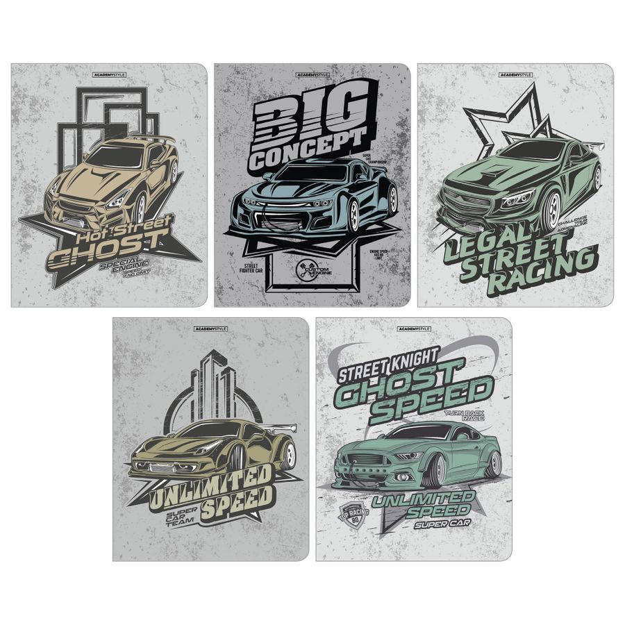 Тетр 48л клетка скрепка 14691/5 Концепт Кар Academy Style Коллекция: Капсула Авто чб Эффекты обложки: матовая ламинация Формат: А5 Материал товара: обложка - картон мелованный, блок 60-65 г