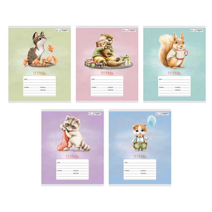 Ученические тетради от LISTOFF с плотной обложкой из мелованного картона, белым блоком 60гр/м, четкой голубой линовкой, красными полями, скругленными углами. Пастельная цветовая гамма и милые зверята будут радовать и дарить мотивацию для красивого почерка. Листаж: 12 листов. Линовка: узкая линия. При производстве соблюдены стандарты ГОСТ. Идеальное сочетание цены и качества.