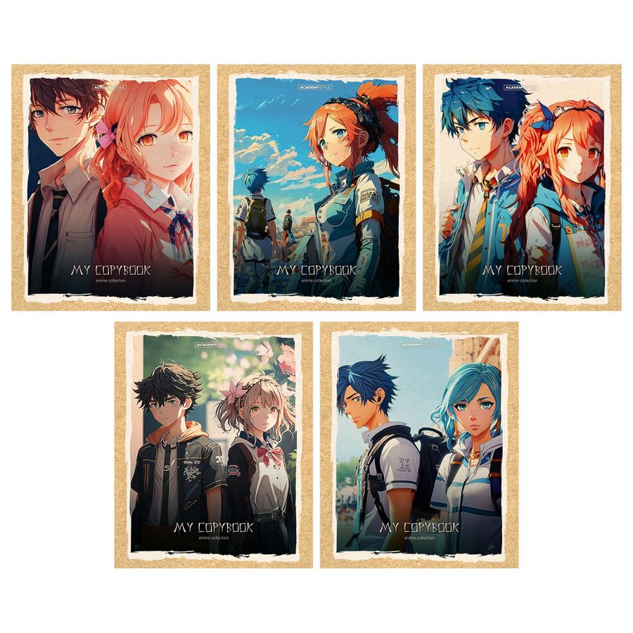 Тетрадь А5 48л клетка скрепка карт.обл. Аниме Крафт тисн.фольгой ассорти ACADEMY STYLE 14086/5