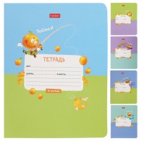 Тетрадь школьная 12л. клетка, на скобе. 5 дизайнов упакованы в термоусадочную пленку по 10 штук. Внутренний блок - офсетная бумага 60 гр. Обложка из мелованного картона плотностью 190 г/м2.