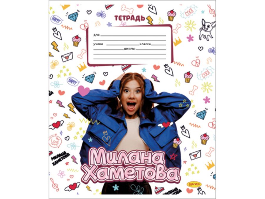 Тетрадь школьная 12л. линия, на скобе. 5 дизайнов упакованы в термоусадочную пленку по 10 штук. Внутренний блок - офсетная бумага 60 гр. Обложка из мелованного картона плотностью 190 г/м2.