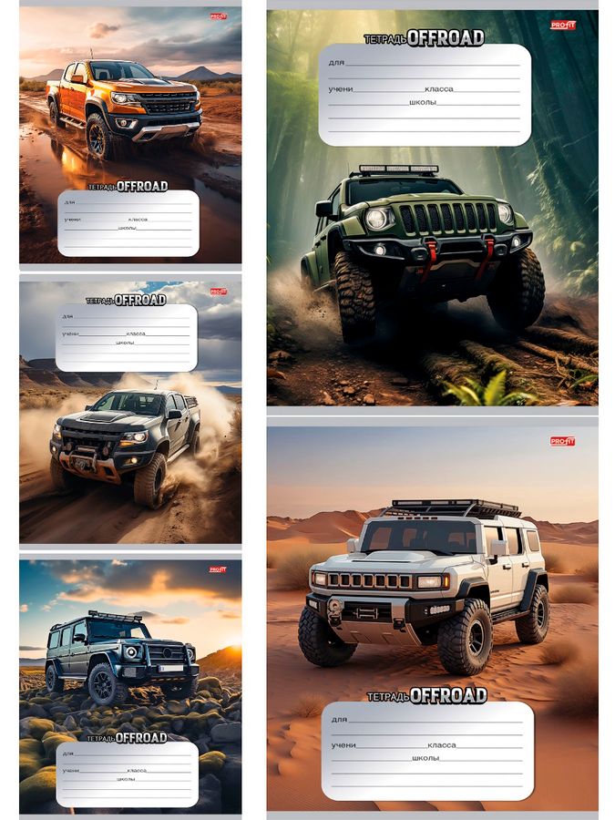 Тетрадь А5 12л клетка обл.мелов.бум. Внедорожник в дикой природе ассорти PROFIT 12-8820