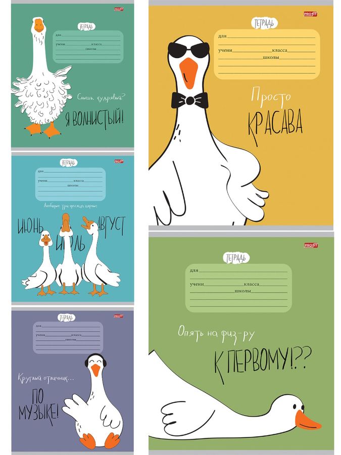 Тетрадь А5 12л клетка обл.мелов.бум. Забавные гуси ассорти PROFIT 12-8821