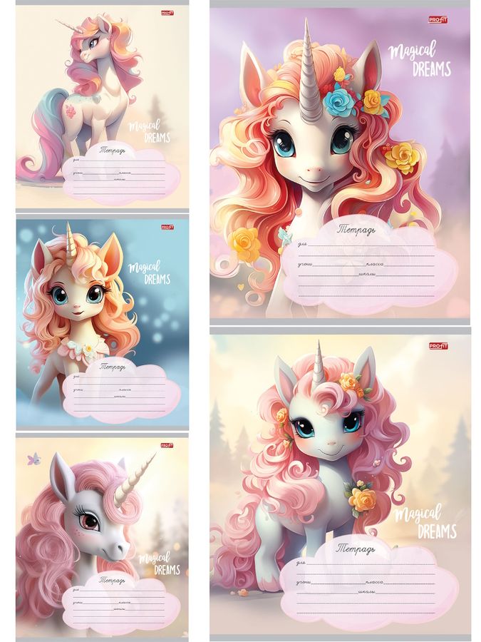 Тетрадь А5 12л клетка обл.мелов.бум. Красивые единорожки ассорти PROFIT 12-8822