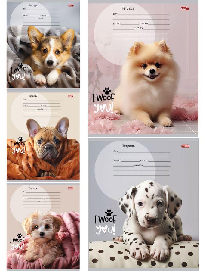 Тетрадь А5 12л клетка обл.мелов.бум. Прелестные щеночки ассорти PROFIT 12-8828