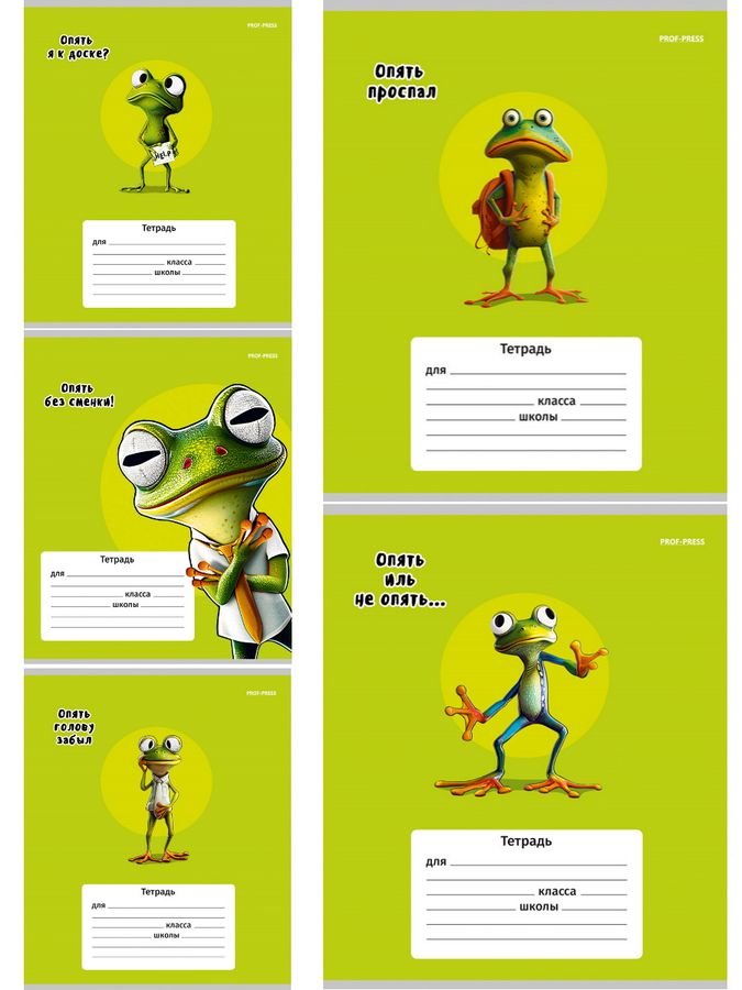 Тетрадь А5 12л клетка обл.мелов.бум. Жабка ассорти PROF-PRESS 12-0686