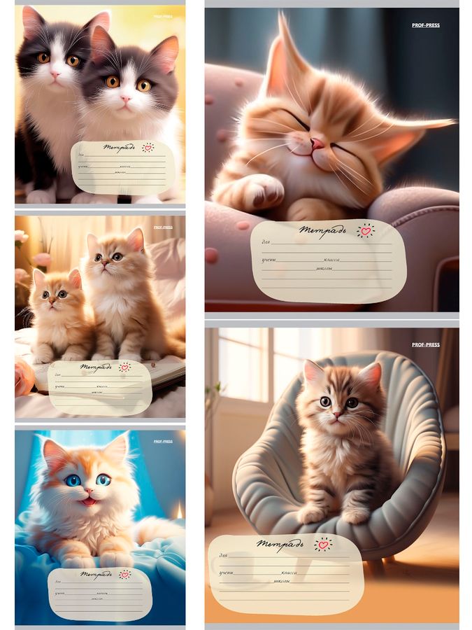 Тетрадь А5 24л линия скрепка обл.мелов.бум. Домашние кошечки ассорти PROF-PRESS 24-5798