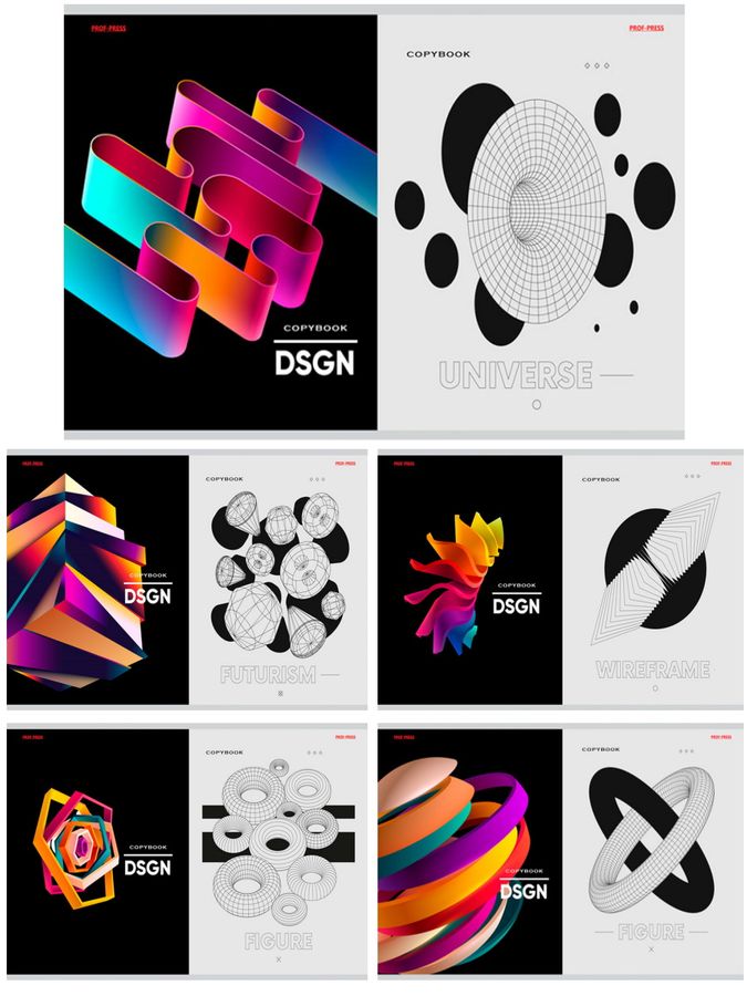 Тетрадь А5 48л клетка скрепка мелов.картон Геометрия абстракции двойная обл. асс. PROF-PRESS 48-1818
