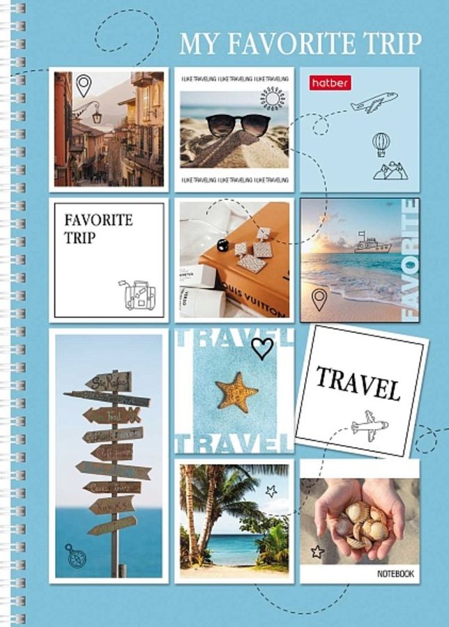 Тетрадь 96л А4ф клетка перфорация на отрыв 65г/кв.м на гребне глянц. ламин. 2 диз. в блоке серия -TRAVEL-
