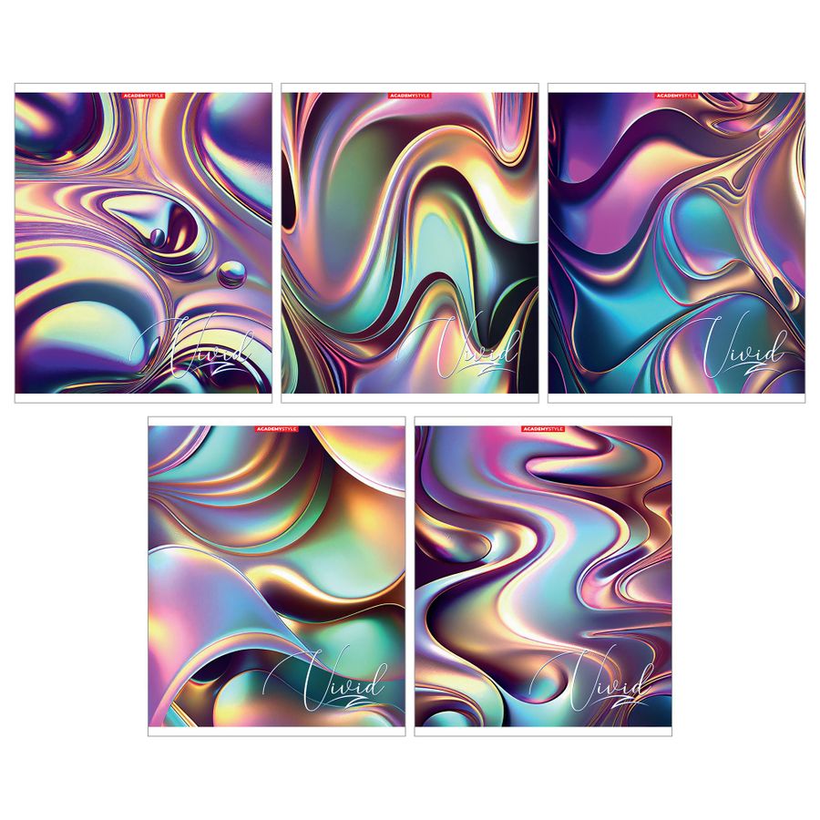 Тетрадь общая А5 на скрепке 48 листов (клетка) (АКАДЕМИЯ) офсет Soft Touch (мягк на ощупь) (ламинация) Нежные разводы Ассорти