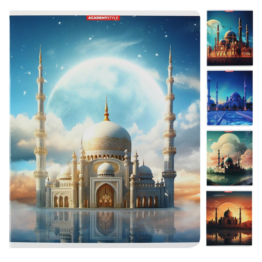 Тетрадь А5 48л линия скрепка мелов.картон Мечети УФ-лак ассорти ACADEMY STYLE 14887/5
